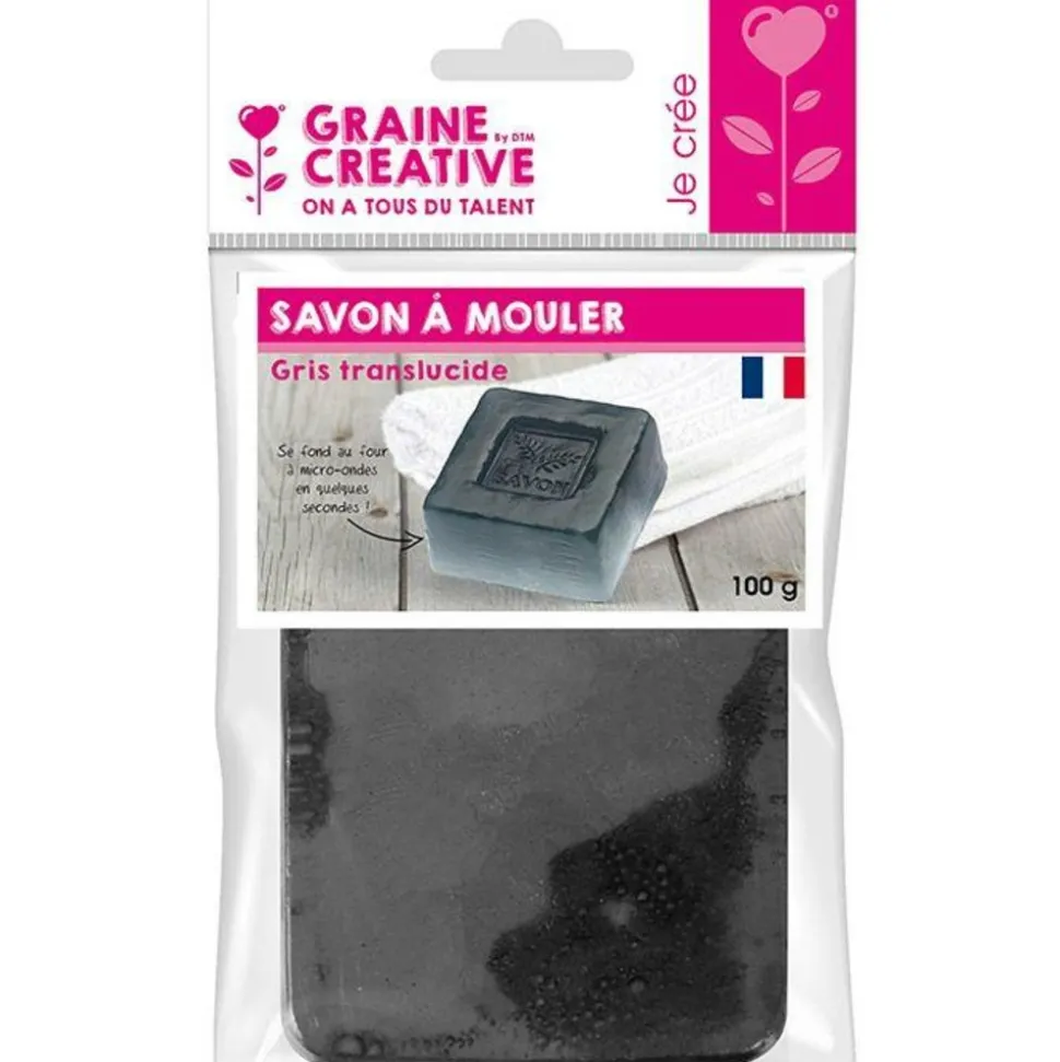 Pain de savon 100 g Translucide gris Faites votre propre savon, à partir de ce pain de savon à mouler. Ce savon de 100 g est prêt à l’emploi et fond au four à micro-ondes. Mode d’emploi : Découper le pain de savon en morceaux dans un récipient en verre. Passer au micro-ondes pendant environ 15 secondes. Mélanger et repasser au micro-ondes jusqu’à obtenir un liquide homogène. Ajouter éventuellement du parfum. Verser le savon dans un moule et laisser refroidir (vous pouvez le mettre au réfrigérateur). La translucidité de ce pain de savon permet de faire de l’inclusion. Après 2 heures de refroidissement, le savon est terminé. Fond au four à micro-ondes en quelques secondes. Couleur : gris.