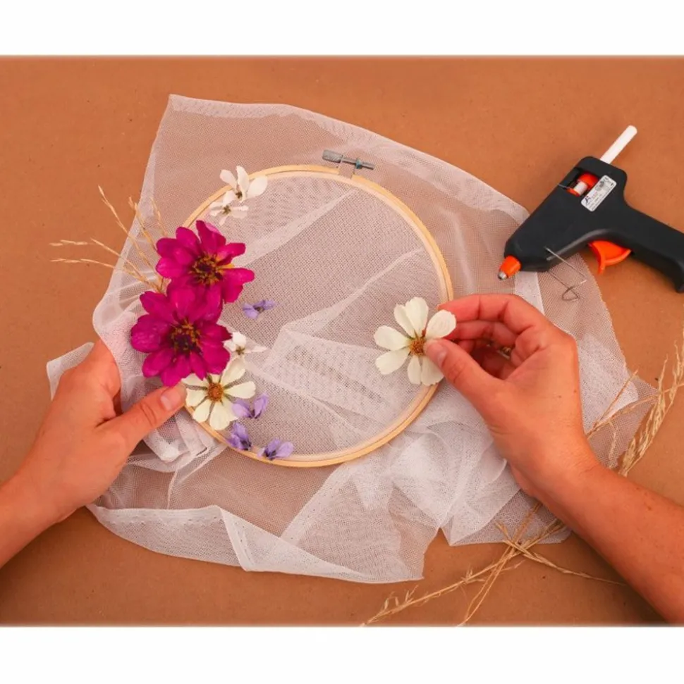 Ce voile de tulle vous permettra de broder tout ce que vous souhaitez (des fleurs, des animaux, des messages窶également l’utiliser comme support de décoration où coller quelques objets : plumes, fleurs, coquillages… Alors laissez libre cours à votre imagination et votre créativité ! Dimensions du voile de tulle : 60 x 45 cm
