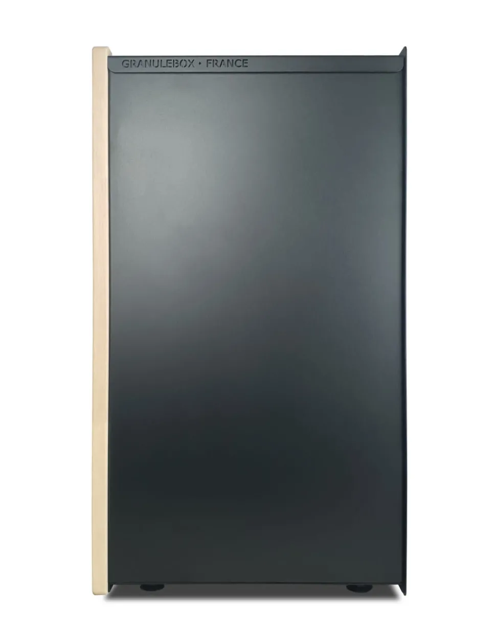 Granulebox evea archi noir : est un stockage à granulés de bois design d’intérieur et de grande contenance permettant de stocker jusqu’à 55 kg de pellets soit plus de 3 sacs de 15kg. Le pellet contient naturellement de l’humidité et la granulebox vous permet de les entreposer près du poêle à température ambiante pour un meilleur rendement calorifique.Le rangement à granulés de bois est pratique, design et de grande qualité tout en acier et recouvert d’une peinture thermodurcissable noire. La façade de 18mm d’épaisseur est fabriquée dans nos ateliers en Ardèche en région auvergne-Rhône-Alpes à base de bois hévéa recyclé reconnu pour sa dureté et sa résistance dans le temps.Une vitre en verre trempé d’une épaisseur de 4mm permet de vois le niveau de votre stock à granulés de bois en sublimant les formes géométriques de l’archi.La granulebox repose sur des vérins pour une meilleure stabilité. Accessoires compatibles disponibles (non inclus):- Filtre à poussière, – Lot de roulettes,- Piètement en bois,- Pelle à pellets avec tamis et poignée en bois. Comme tous nos produits, cette granulebox evea archi noire est garantie 5 ans et est 100% fabriquée en France.Toutes les pièces sont interchangeables à vie.Livraison à plat. Montage simple à faire soi-même.
