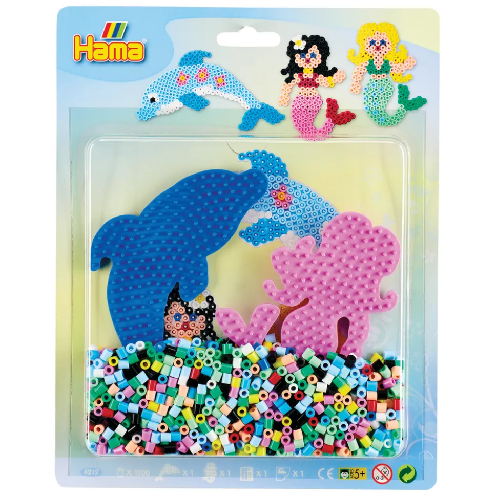 Retrouvez dans ce petit coffret 2 petites plaques « dauphin » et « sirène », 1100 perles, des instructions et le papier à repasser. Pour jouer, rien de plus simple :1) Poser les perles sur la plaque.2) Couvrir le motif avec le papier à repasser puis repasser au fer très chaud sans vapeur. Le repassage est laissé aux soins des adultes.3) Enlever le motif obtenu de la plaque de base qui est réutilisable.Les jeux Hama sont pensés pour le développement intellectuel et moteur des enfants. Au cours des premières années de vie, les petits apprennent à reconnaître les couleurs, à saisir les objets, à distinguer les formes, à avoir une première idée des quantités, etc. C窶册st en relation avec ces années d窶兮pprentissage que les produits Hama montrent leur force en tant que jouets pédagogiques. Guidés par leurs parents, les enfants s窶兮museront à prendre confiance en eux.Des activités qui développent le partage, la dextérité et qui stimulent la curiosité !Adapté pour les enfants de plus de 5 ans.