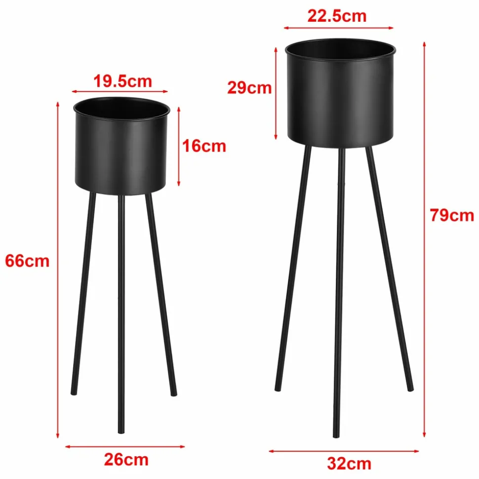 Set de 2 supports de plantes Ces supports de plantes dissimulent les pots et soulèvent les plantes décoratives pour les rendre encore plus prononcées. Vos chambres seront entièrement verdies. Les cache-pots embelliront n’importe quelle pièce de votre maison. Description : – 2 supports de tailles différentes – met en valeur la plante et cache discrètement le pot – design intemporel Dimensions : – support de plante 1 (hauteur x largeur x profondeur) : 66 x 26 x 26 cm – cache-pot 1 (hauteur x diamètre) : 16 x 19,5 cm – support de plante 2 (hauteur x largeur x profondeur) : 79 x 32 x 32 cm – cache-pot 2 (hauteur x diamètre) : 29 x 22,5 cm Matière : métal Couleur : noir Contenu de la livraison : 2 x supports de plantes