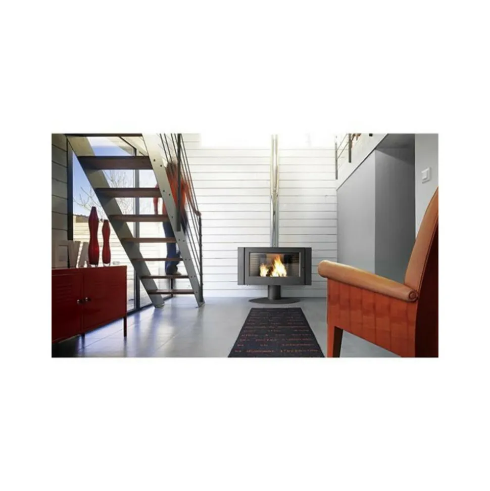 Poêle à bois Antaya – Laissez-vous captiver par la magie d’Antaya. Au programme de ce poêle cheminée grand écran : performance et style renversant – Tout fonte anthracite – Grande vision de la flamme – Longueur maximale des bûches 71 cm horizontalement – Air secondaire réglable : l’ air secondaire protège la vitre contre la fumée et le dépôt de suie. Il assure la combustion des matières volatiles. Le débit réglable d’air secondaire permet d’adapter le fonctionnement de l’appareil à des conditions de tirage trop élevées – Combustion prolongée 8 heures : capacité de l’appareil à fonctionner en combustion lente pendant 8 heures sans recharge en combustible et sans intervention extérieure. Une réserve de braises est retrouvée à l’issue de cette période. Il suffit de recharger l’appareil en combustible pour le redémarrer – Post combustion : injection d’air préchauffé dans la chambre de combustion. L’arrivée d’air supplémentaire par l’arrière permet de détruire les hydrocarbures à haute température. La combustion est complète et la pollution réduite – Système Vitre propre – Régulation manuelle – Raccordement dessus Ø 180 mm. Le prix indiqué comprend la TVA à 20%.