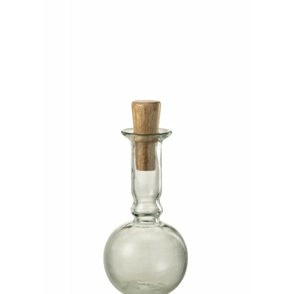 Vase bouteille ronde avec bouchon en verre transparent 12x12x25 cm