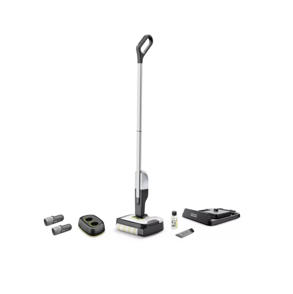 Accessoire(s) inclus : Rouleau universel en microfibres lavables en machine, Chargeur rapide, 2 batteries 4V, Station d’accueil, Détergent universel 30 ml.
