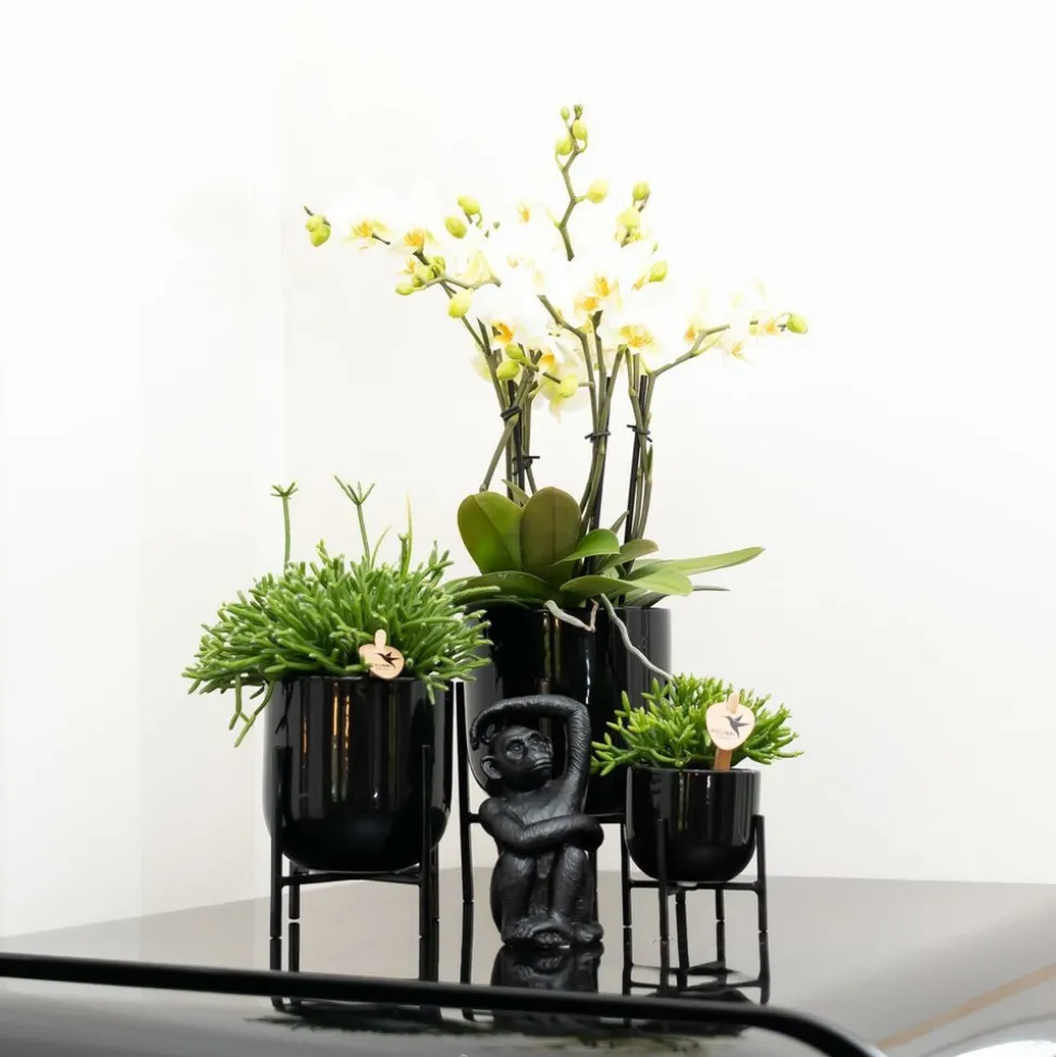 Ajouter un bel ornement à l’intérieur est très facile et crée plus d’atmosphère dans la maison. Cette figurine ludique et amusante a la forme d’un singe. La figurine est fabriquée en polystone, un mélange de pierres broyées qui lui confère une beauté durable. Placer les accessoires avec un ensemble de plantes pour compléter l’ensemble. Cet adorable ornement est disponible dans les couleurs or, brun et noir, permettant des combinaisons infinies. L’ornement Singe assis sur le dos a une hauteur de 13 centimètres. Chaque ornement est fait à la main, rendant chaque pièce unique. Mettre le singe à côté d’une orchidée ou d’une plante verte et profiter d’un véritable plaisir pour les yeux dans la maison.Emballage et livraisonLes plantes et pots sont envoyés directement de la pépinière. Ils sont emballés dans une boîte d’expédition spécialement conçue pour garantir que les plantes et les pots ne seront pas endommagés pendant le transport.