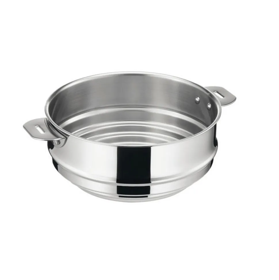Cuit-vapeur Salvaspazio+ Lagostina 12138210220 pour les casseroles 16/18/20 cm de diamètre. Le secret du succès italien est amovible ! Le cuit-vapeur Salvaspazio+ de Lagostina en acier inoxydable 18/10 est l’ustensile parfait pour une cuisine saine et savoureuse et est compatible avec les casseroles de différents diamètres (16-18-20 cm). Empilez votre cuit-vapeur avec les casseroles et poêles dans vos armoires pour gagner jusqu’à 50 % d’espace, par rapport aux produits traditionnels à poignées fixes. Construit pour durer en matière d’acier inoxydable de qualité et de fabrication experte, pour une robustesse, une durabilité et un plaisir de cuisiner maximum.