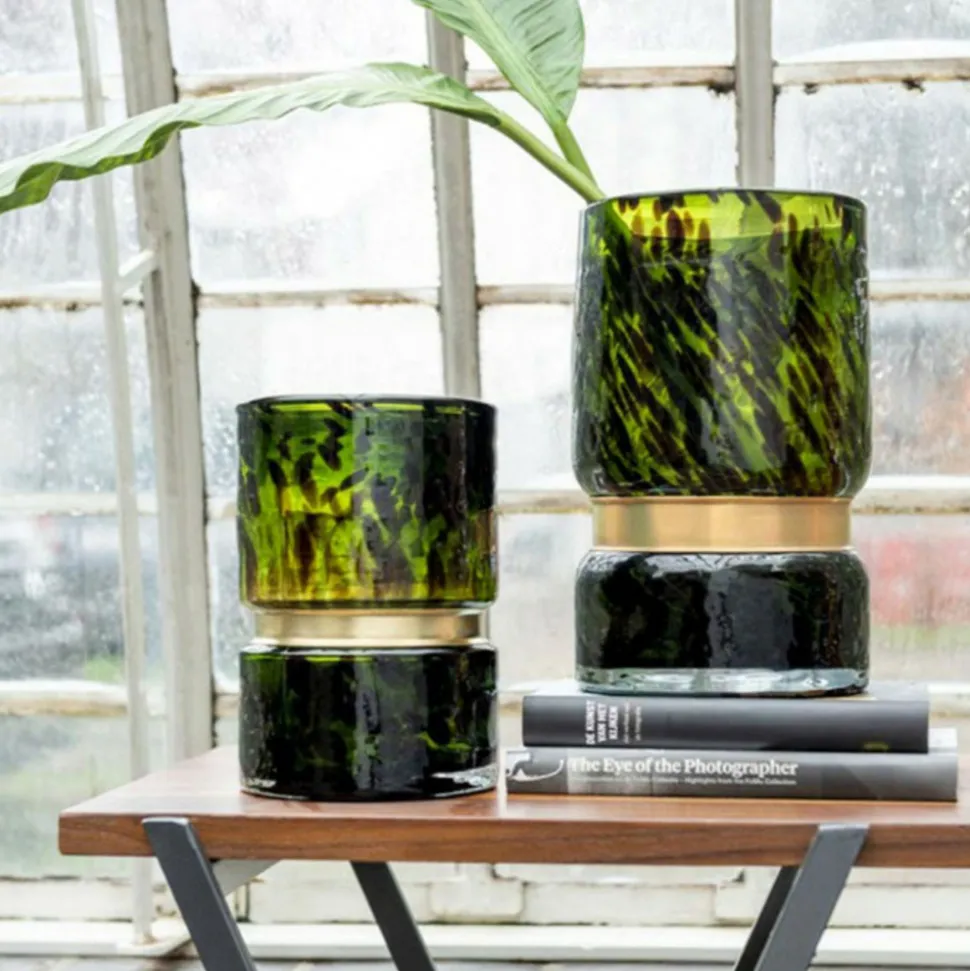 Dimensions : D. 16 x H. 23,5 cmMatière : VerreSpécificités :Tendance & ModerneVase designForme RondeA MotifsFacile d’utilisation & d’entretienPoids : 2,38 kgCouleur : Vert, Noir & Or