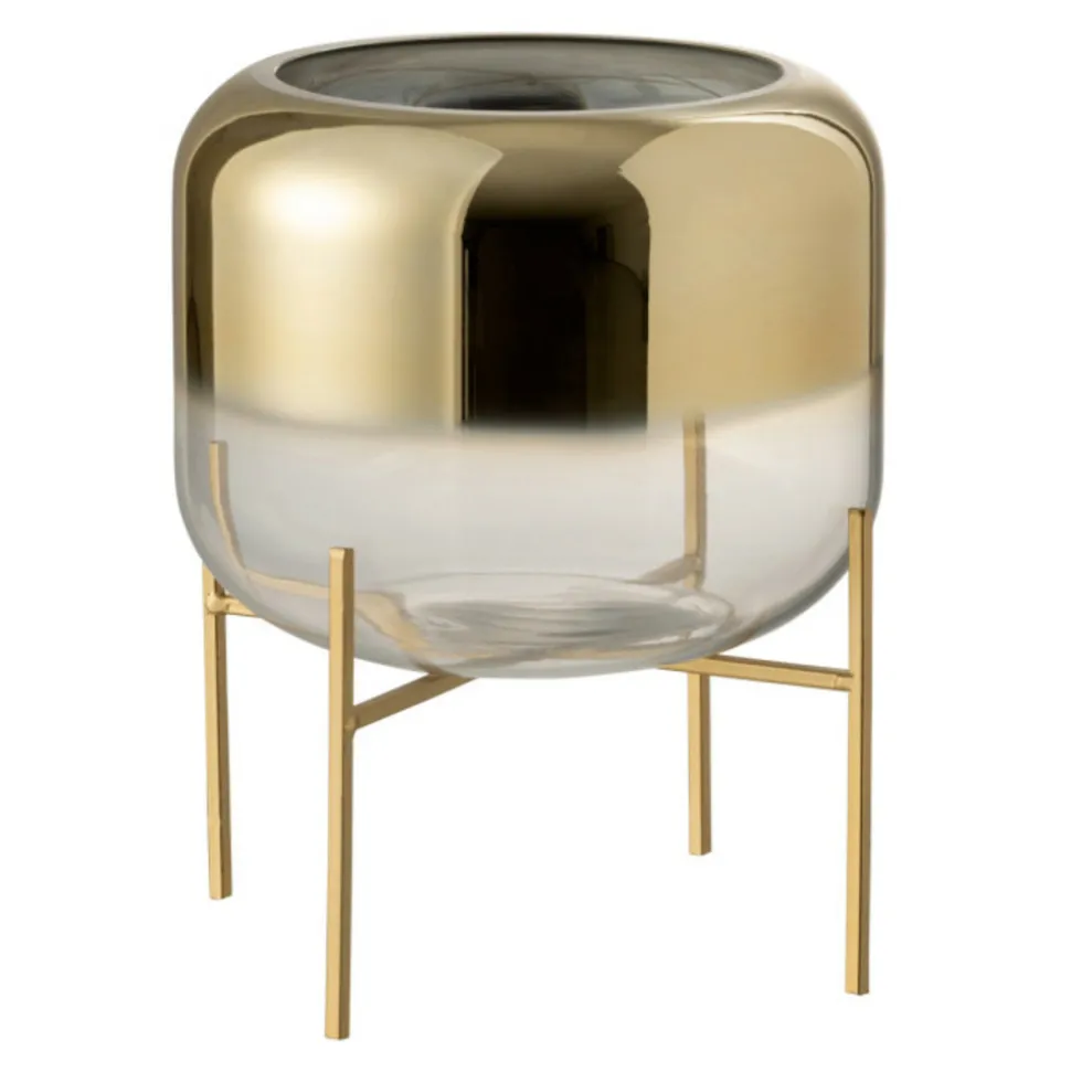 Dimensions : D. 24,5 x H. 24,5 cmMatière : VerreSpécificités :Tendance & OriginalVase sur Pied designForme RondeFacile d’entretien & d’utilisationPoids : 1,44 kgCouleur : Or