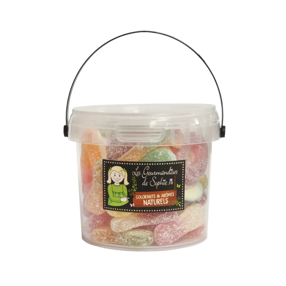Et si, le temps d’une gourmandise, vous retombiez en enfance ? C’est facile avec cet assortiment de bonbons ! Parmi les différents types de bonbons disponibles dans cet assortiment, retrouvez notamment des langues acides pomme-orange, framboise-citron, cassis-citron et des anneaux aux saveurs fruitées. Sans colorants artificiels et avec des arômes naturels, ces douceurs vont réveiller vos souvenirs d’enfance. Une fois vos confiseries savourées, profitez de leur contenant pour y glisser vos bonbons préférés. Seau confiseries : duo acidulé – 195g.