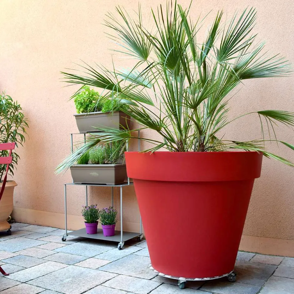 Les pots de fleurs peuvent être très lourds à porter. Pour vous faciliter leur déplacement, placez-les sur ce support XXL de 50 cm. Cet équipement en aluminium peut supporter jusqu’à 150 kg répartis uniformément. Il vous suffit ensuite de le faire rouler à l’aide de ses 5 roues (dont 1 avec frein) pour déplacer sans effort le pot de fleurs qu’il supporte. Désormais, vous pouvez changer votre décoration extérieure ou tout simplement nettoyer plus facilement votre extérieur. Ce support pour pots de fleurs va vite devenir un indispensable.