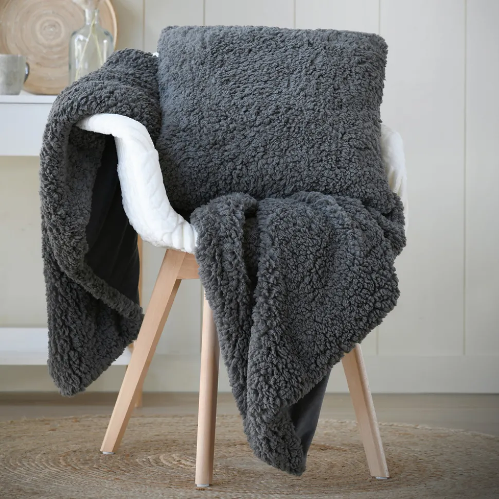 - Matière : 100 % polyester, fausse fourrure au recto, sherpa au verso