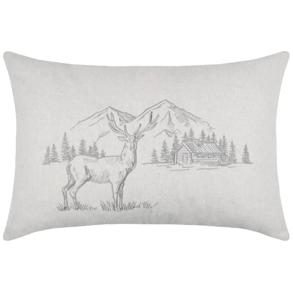 - Motif brodé : cerf, montagnes, chalet et sapins