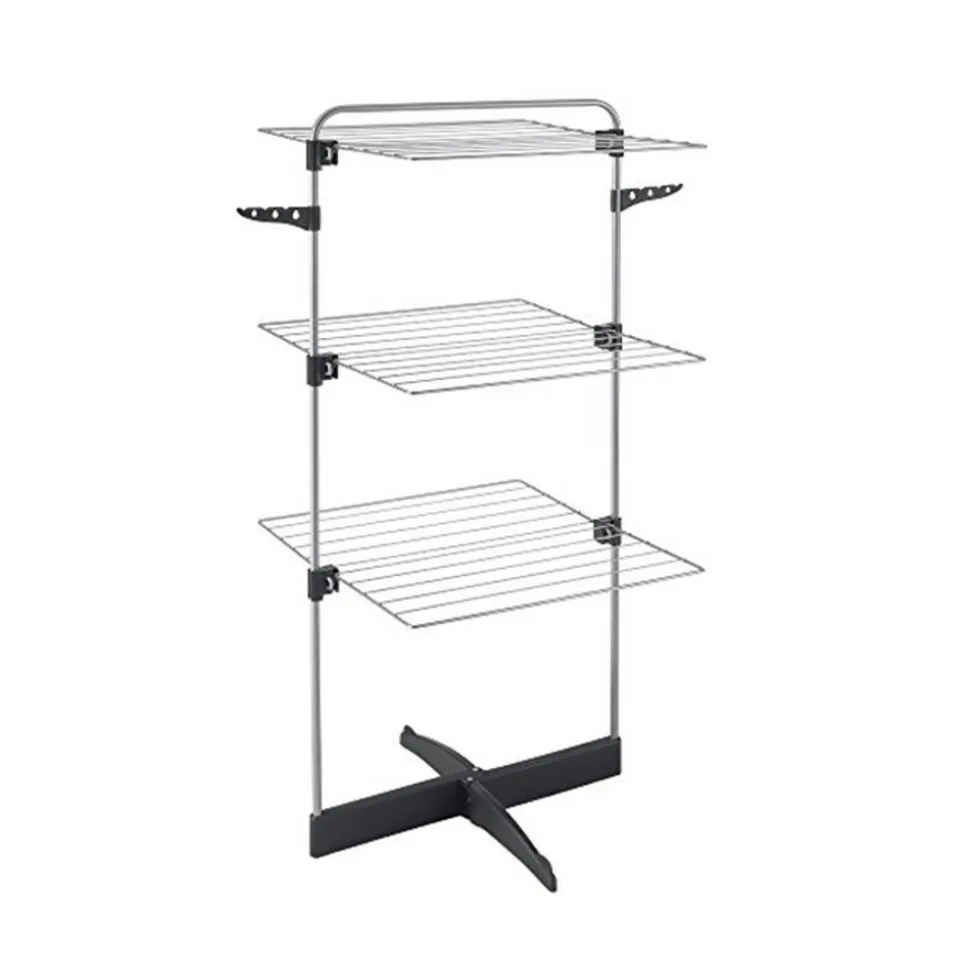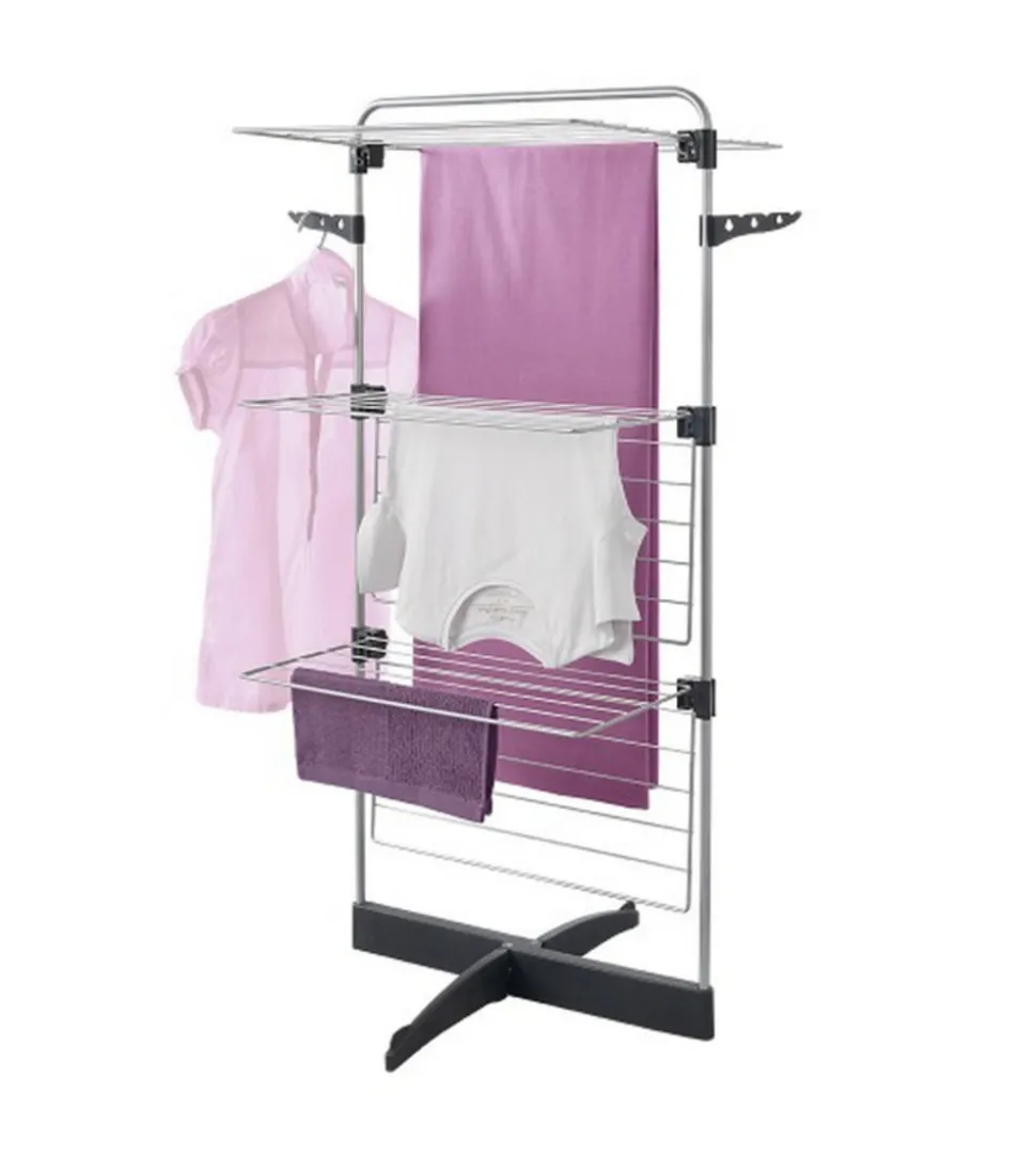 Le séchoir à linge 3 étages Thunder Metaltex 405850 est un rack de séchage vertical compact qui tient partout dans votre maison. Un accès facile aux ailes repliables pour une flexibilité optimale. La tour de séchage de Thunder avec 22 mètres d’étendage est idéal pour les petits espaces. Séchoir à linge 3 étages, vous pouvez choisir d’utiliser tout ou seulement quelques racks. Dans ce cas, vous pouvez ouvrir la tour de séchage en deux et placez-le contre un mur. Mais vous pouvez aussi l’ouvrir complètement, par exemple pour sécher une serviette de bain longue. Les deux bras sont utilisés pour accrocher des cintres.