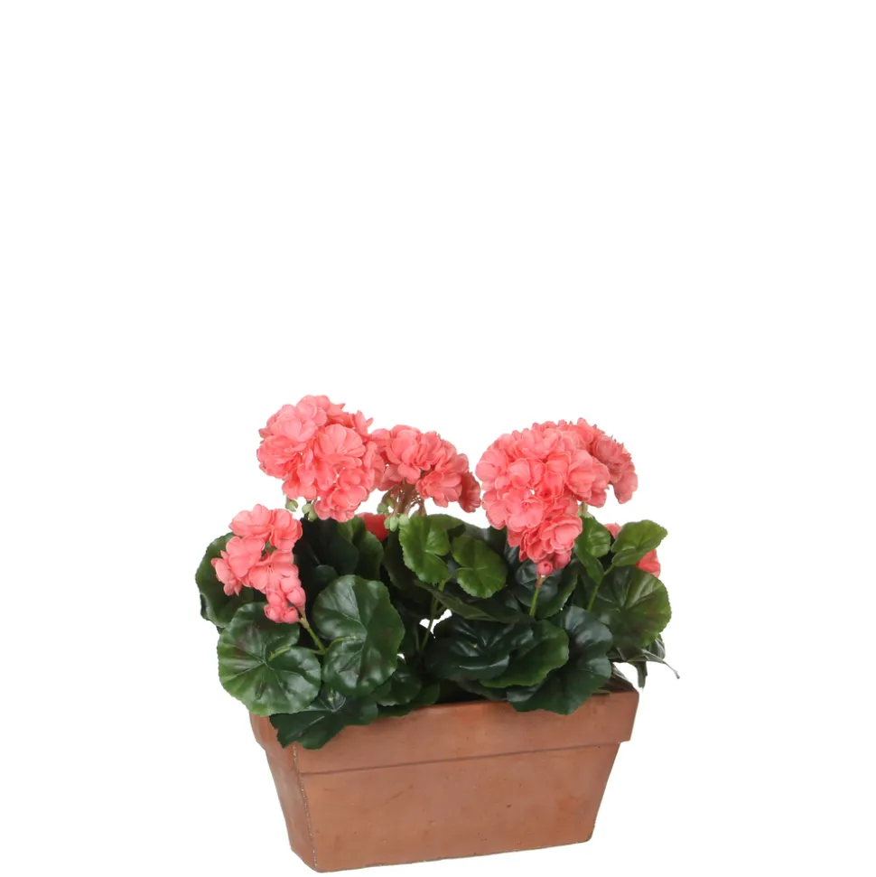 Quel plaisir de posséder chez soi et tout au long de l’année des plantes exotiques, des fleurs hors saison ou des bouquets plus vrais que nature et ce, quels que soient le climat, la luminosité ou l’absence d’entretien. Et oui, les plantes artificielles sont impérissables ! Cette adorable jardinière de géraniums pêche en plastique se plaira dans votre intérieur pour apporter une touche de couleur et de gaité. Dimensions : L.29 x l. 13 x H. 40 cm.