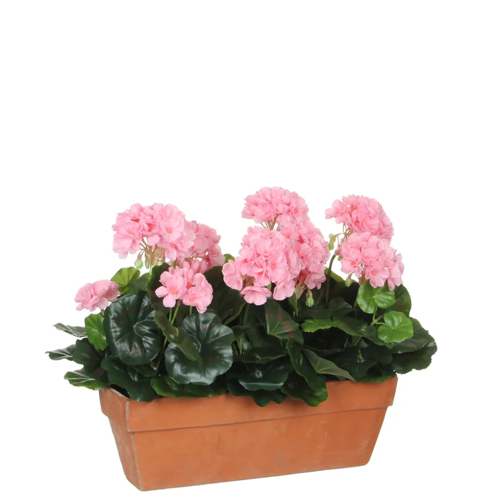 Quel plaisir de posséder chez soi et tout au long de l’année des plantes exotiques, des fleurs hors saison ou des bouquets plus vrais que nature et ce, quels que soient le climat, la luminosité ou l’absence d’entretien. Et oui, les plantes artificielles sont impérissables ! Cette adorable jardinière de géraniums rose en plastique se plaira dans votre intérieur pour apporter une touche de couleur et de gaité. Dimensions : L.29 x l. 13 x H. 40 cm.