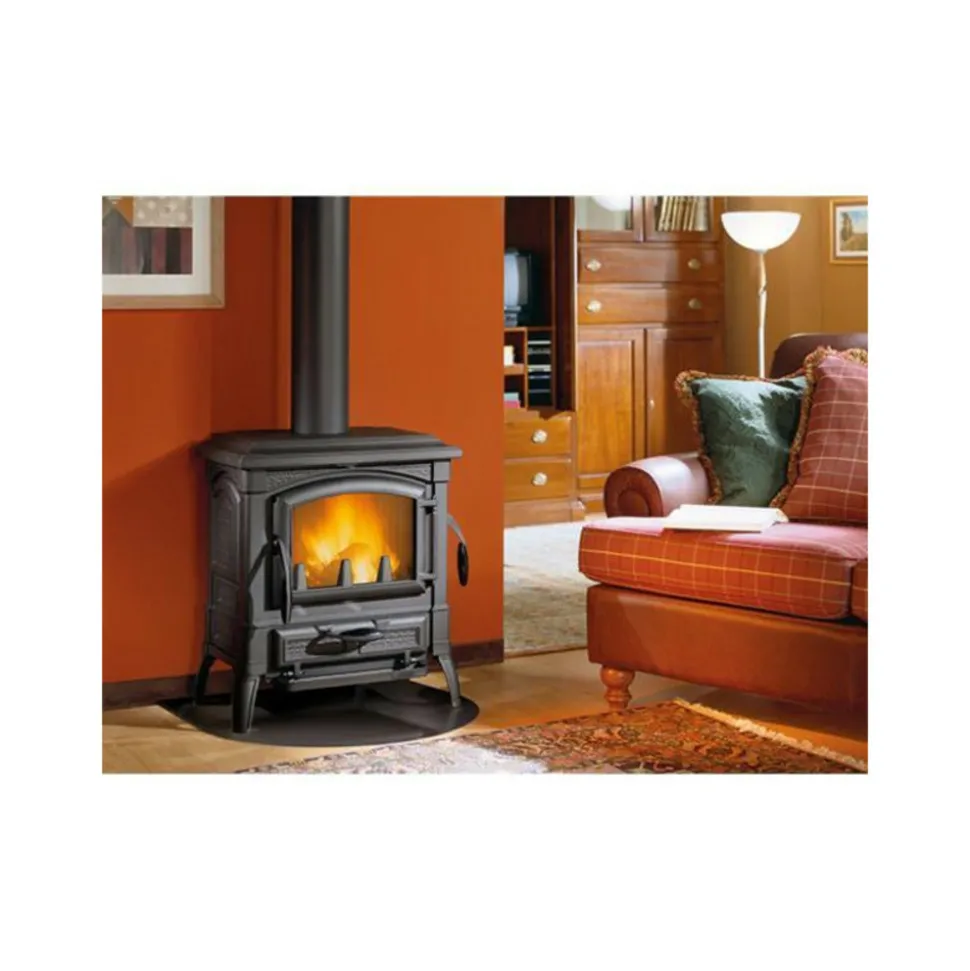 Poêle à bois Isetta EVO 4.0 – Structure en fonte émaillée noire – Portes de chargement frontal et latéral – Vitre céramique – Intérieur foyer en fonte – Post-combustion – Système Vitre propre – Air primaire et secondaire réglables – Raccordement arrière Ø 150 mm – Le prix indiqué comprend la TVA à 20%.