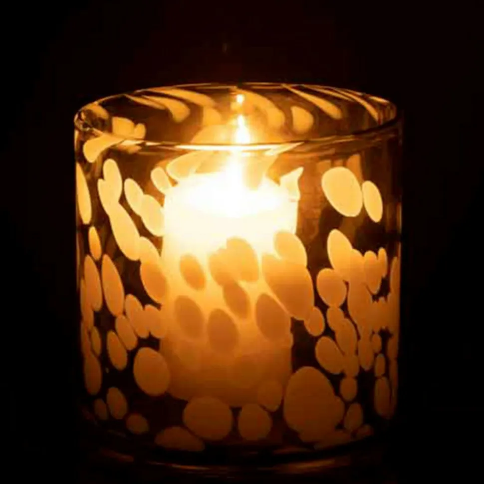 Dimensions : D. 12 x H. 12 cmMatière : VerreSpécificités :Pratique & ChicPhotophore DécoForme RondeDesign TâchesPoids : 0,7 kgCouleur : Gris & Blanc