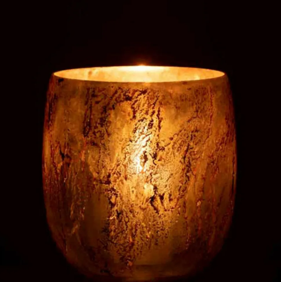 Dimensions : D. 16 x H. 16 cmMatière : VerreSpécificités :Tendance & ChicPhotophore DesignForme RondeStyle Vintage & RétroPoids : 0,6 kgCouleur : Marron & Or
