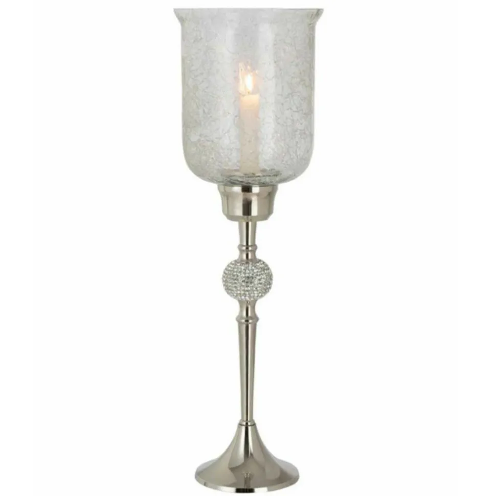 Dimensions : D. 17,5 x H. 55,5 cmMatières : Verre & AluminiumSpécificités :Tendance & ModernePhotophore DesignSur PiedForme RondeDesign Sphère DiamantEffet CraqueléA monter soi-mêmePoids : 1,79 kgCouleur : Argent