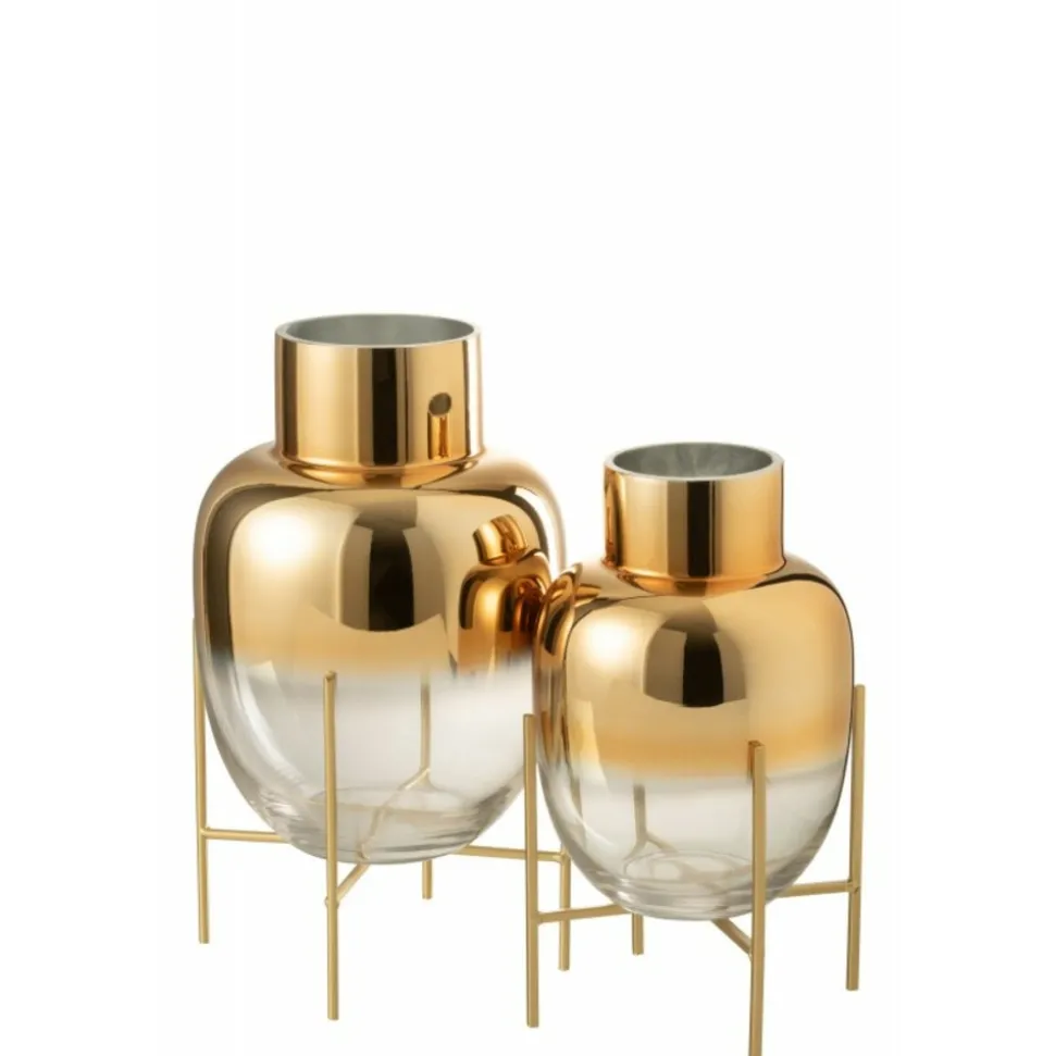 Dimensions : L. 23 x l. 37 x H. 38 cmMatières : Verre & MétalSpécificités : Pratique & UtileVase DesignSur PiedForme CylindriquePoids : 1,6 kgCouleur : Or & Transparent