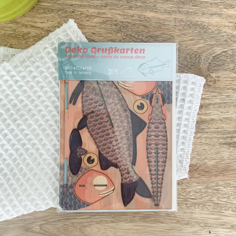 Cette carte message se transforme en joli poisson coloré en bois 3D, à monter soi-même. Idéal à offrir comme cadeau pour les fêtes de fin d’années ! Ce produit contient une carte de voeux, une enveloppe et une maquette en bois à monter. Faciles à monter, cette maquette est réalisée en bois de bouleau. Livrée sous emballage en bioplastique, avec notice de montage. Fabrication : Allemagne. Epaisseur du bois : 1 mm. Dimensions : 15 x 11 cm.