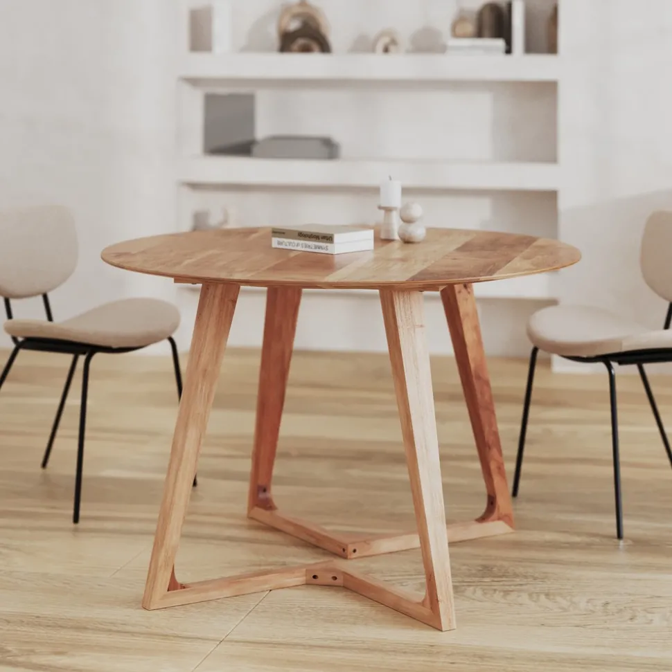 Réalisée en bois d’acacia, cette table offre une palette de nuances profondes. Son design audacieux s’exprime dans un piètement sculptural. On aime son esthétique élaborée et la qualité de son bois traité contre les taches, parfait pour un usage intensif.
