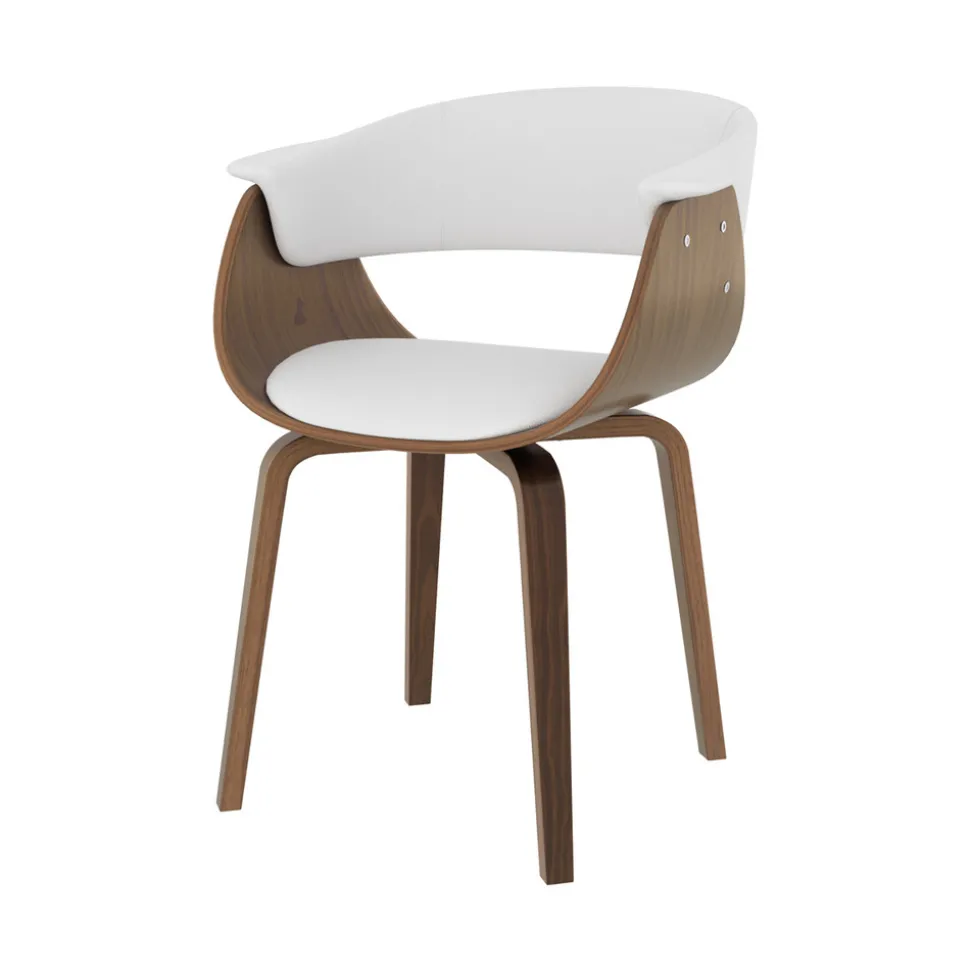 Élégante sur son piètement incurvé en bois plaqué noyer, notre chaise blanche Piada avec accoudoirs vous plaira par son assise et ses accoudoirs synonymes de bien-être. Grâce à notre duo de charme, pour pourrez aussi agrémenter votre coin repas.