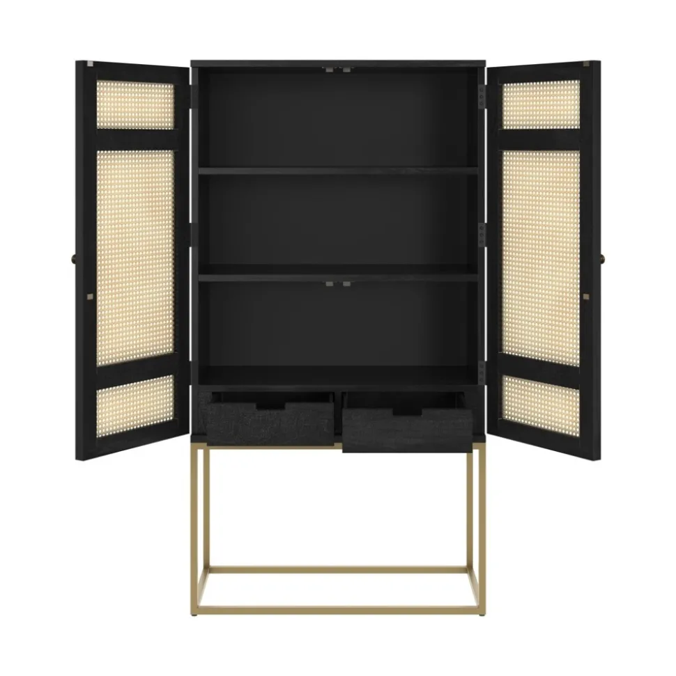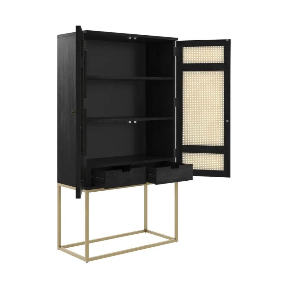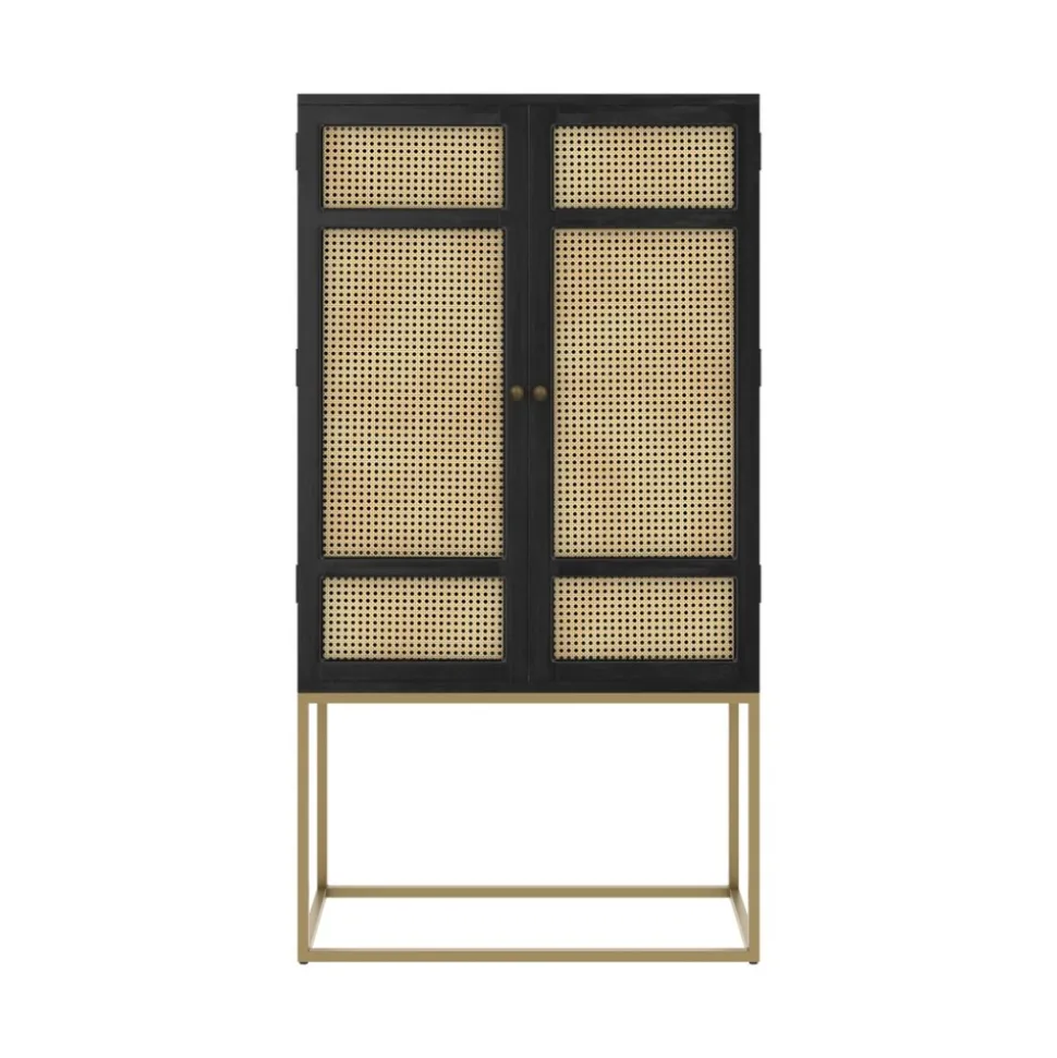 Avec le retour en force du rétro, les designers réinventent dans un esprit contemporain les must du design. Ainsi, notre armoire noire en bois et cannage 2 portes Shellona noir en cannage vous séduira par son allure efficace. Sobre et minimaliste, notre armoire fait partie de ces meubles qui transforment une ambiance. Élancé sur son piètement métallique, ce meuble vous séduira par son allure épurée et ses dimensions.