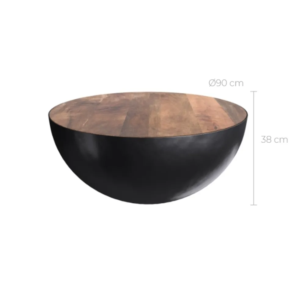 Le bois de manguier massif se mêle à l’acacia pour offrir une belle gamme de coloris. On aime sa forme de demi-sphère aux formes douces. La présence de métal noir composant la base met en valeur le plateau. Ce modèle stable et robuste est idéal pour partager un moment de convivialité.
