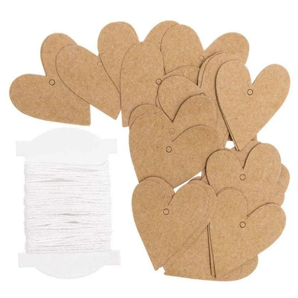 24 pendentifs cœurs papier kraft S.Customisez ces pendentifs et accrochez-les sur un sac, une trousse, un cadeau … pour les personnaliser !