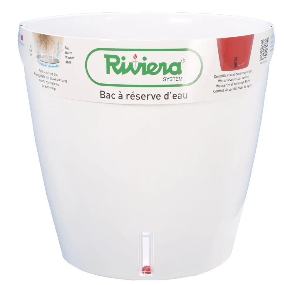 Le pot Eva New possède un coloris blanc d’aspect brillant qui contribuera à embellir vos plantes. Son visuel rond et moderne pourra s’intégrer dans les extérieurs classiques et dans les extérieurs modernes avec la même facilité. Votre terrasse, ou votre salon auront là un atout de taille. L’un de ses attributs non négligeables réside dans sa réserve d’eau brevetée qui évite les soucis liés à l’arrosage. Le niveau d’eau de la réserve est visible grâce à un voyant transparent situé sur le côté. De plus, il peut être en extérieur toute l’année, car il est résistant aux UV et est non poreux. Fabrication française ! Fabriqué en polypropylène. Dimensions : H. 45 x D. 45cm. Contenance : 49 Litres.