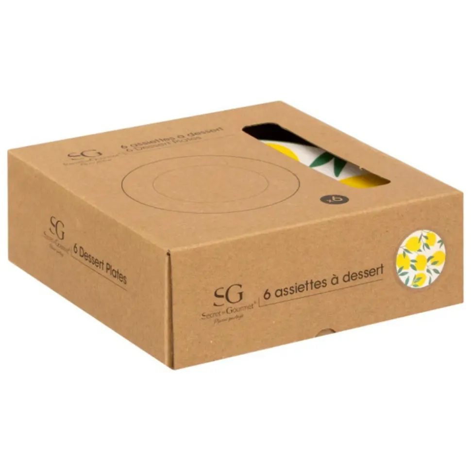 Dimensions : D. 19 x H. 2,1 cmMatière : PorcelaineSpécificités :Coloré & UtileLot de 6 assiettes à dessertImprimé citronForme rondePoids : 0,32 kg (à l’unité)Couleur : Multicolore