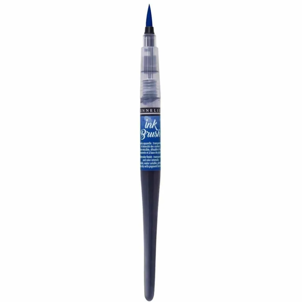 Stylo pinceau avec réservoir à encre prérempli de 6,5 ml offrant une prise en main similaire à un pinceau classique. Grâce à votre utilisation et à la variation de pression de la pointe sur le papier, vous pouvez obtenir différents tracés. Ce pinceau offre une large polyvalence et vous accompagnera dans vos activités de scrapbooking, de carterie, lettrage, bullet journal. Lancée par Sennelier en 2020, Ink Brush est une gamme de 36 pinceaux d’encre diluable à l’eau. Ce pinceau, dessiné par Yves-Marie Salanson, le directeur artistique de la maison Sennelier, est innovant par bien des aspects : des pointes de pinceaux en vraies fibres synthétiques (contrairement aux feutres avec embouts en mousse), rendant l’application de la couleur plus fluide, constante et linéaire, profitant de la capillarité interne du pinceau pour faciliter la dispersion de la couleur. Dans le même geste, l’artiste peut créer des lignes extrêmement fines et très larges (jusqu’à 10 mm) avec un flux continu d’encre, par simple variation de pression de la pointe sur le papier. Par ailleurs, la formule est de base pigmentaire exclusive à Sennelier, respectueuse de l’environnement (ce qui explique qu’il n’y a aucun marquage de sécurité sur l’étiquette). 24 des 36 couleurs appartiennent à la gamme ‘La Petite Aquarelle’ de Sennelier. Les pinceaux encre ‘Ink Brush de Sennelier’ conviendront donc autant aux adeptes du Lettering, aux fans de Bullet Journal, qu’aux aquarellistes. En résumé : pointe pinceau formée de fibre synthétique, encre diluable à l’eau, respectueuse de l’environnement, formule exclusive Sennelier, base pigmentaire 24 couleurs identiques aux couleurs de la gamme ‘la Petite Aquarelle’, et 12 couleurs irisées, pointe précise, flux régulier, design élancé, proche de la forme d’un pinceau. Couleur : bleu