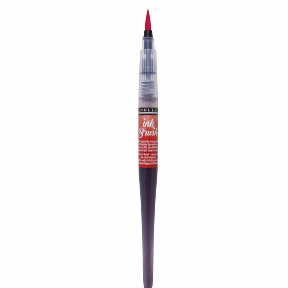 Stylo pinceau avec réservoir à encre prérempli de 6,5 ml offrant une prise en main similaire à un pinceau classique. Grâce à votre utilisation et à la variation de pression de la pointe sur le papier, vous pouvez obtenir différents tracés. Ce pinceau offre une large polyvalence et vous accompagnera dans vos activités de scrapbooking, de carterie, lettrage, bullet journal. Lancée par Sennelier en 2020, Ink Brush est une gamme de 36 pinceaux d’encre diluable à l’eau. Ce pinceau, dessiné par Yves-Marie Salanson, le directeur artistique de la maison Sennelier, est innovant par bien des aspects : des pointes de pinceaux en vraies fibres synthétiques (contrairement aux feutres avec embouts en mousse), rendant l’application de la couleur plus fluide, constante et linéaire, profitant de la capillarité interne du pinceau pour faciliter la dispersion de la couleur. Dans le même geste, l’artiste peut créer des lignes extrêmement fines et très larges (jusqu’à 10 mm) avec un flux continu d’encre, par simple variation de pression de la pointe sur le papier. Par ailleurs, la formule est de base pigmentaire exclusive à Sennelier, respectueuse de l’environnement (ce qui explique qu’il n’y a aucun marquage de sécurité sur l’étiquette). 24 des 36 couleurs appartiennent à la gamme ‘La Petite Aquarelle’ de Sennelier. Les pinceaux encre ‘Ink Brush de Sennelier’ conviendront donc autant aux adeptes du Lettering, aux fans de Bullet Journal, qu’aux aquarellistes. En résumé : pointe pinceau formée de fibre synthétique, encre diluable à l’eau, respectueuse de l’environnement, formule exclusive Sennelier, base pigmentaire 24 couleurs identiques aux couleurs de la gamme ‘la Petite Aquarelle’, et 12 couleurs irisées, pointe précise, flux régulier, design élancé, proche de la forme d’un pinceau. Couleur : rouge