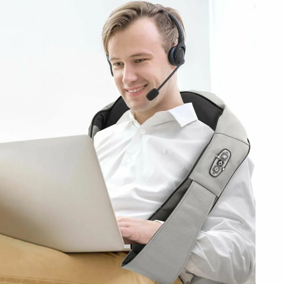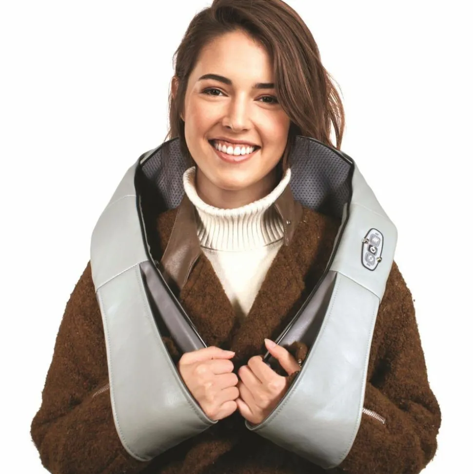Informations complémentaires : Masseur cervical chauffant , chaleur en continu , système rotatif : 8 têtes massantes , massage localisé , rechargeable sur secteur , minuteur 15 min , notice incluse , système écharpe