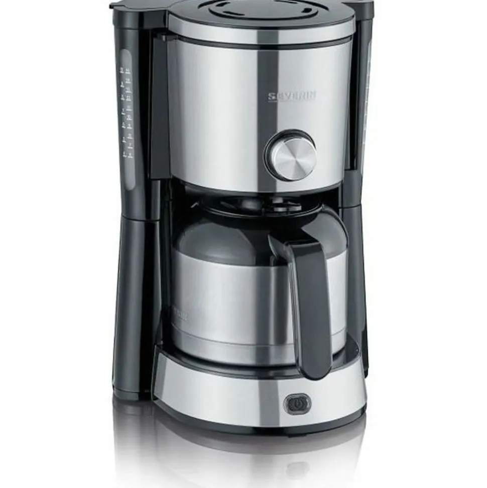 La cafetiere filtre isotherme SEVERIN KA4845 est dotée d’un design de qualité en inox et d’un sélecteur d’arôme pour un café doux ou corsé. Elle peut préparer jusqu’à 8 tasses soit 1 L de café en une seule fois. Son porte-filtre 1×4 est lavable au lave-vaisselle avec systeme anti-goutte. Elle dispose également d’un arret automatique 5 min apres percolation.