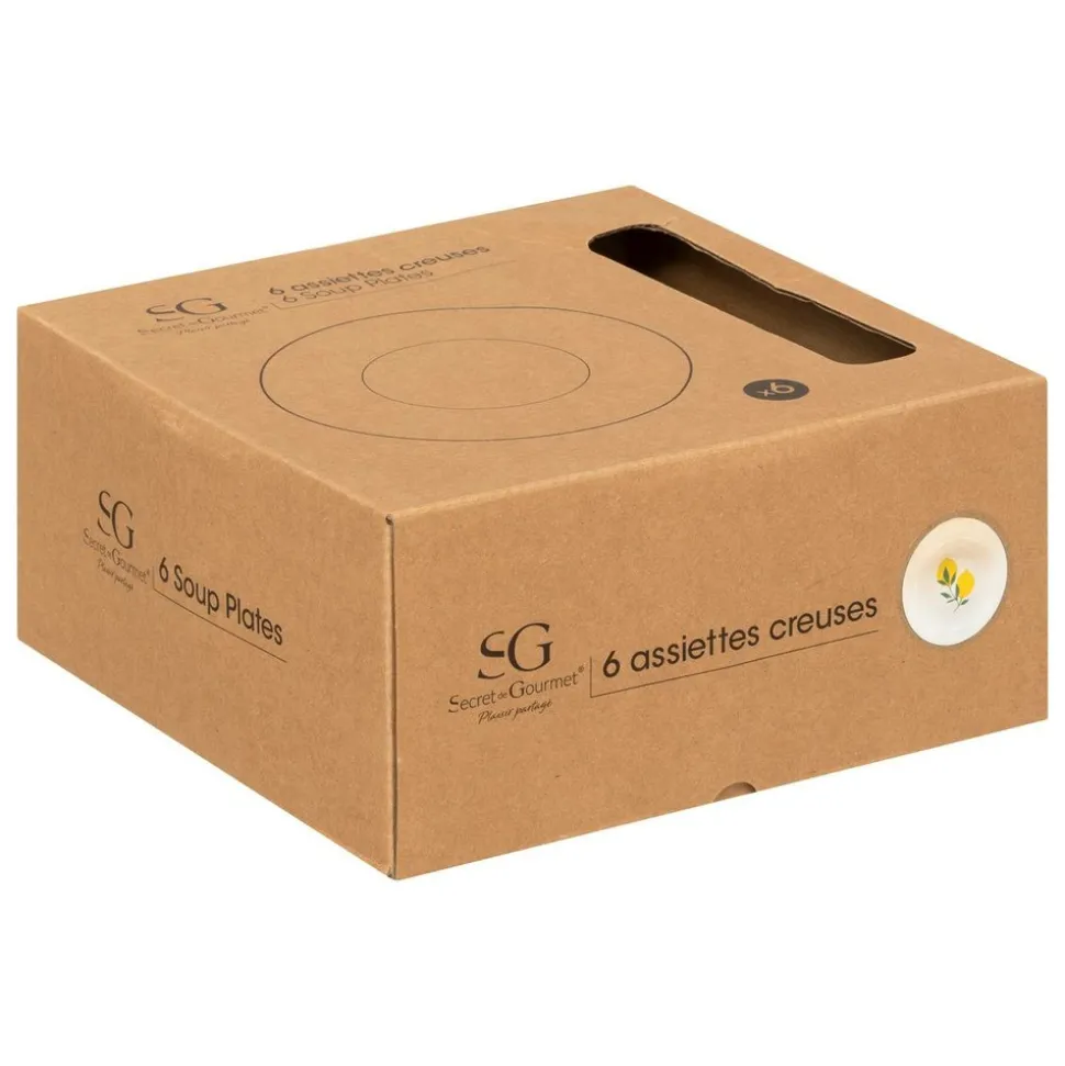 Le lot de 6 assiettes creuses « Citron » est composé d’assiettes alimentaires compatibles avec un lavage au lave-vaisselle ainsi qu’avec le passage au micro-ondes et au congélateur. Elles sont incompatibles avec un passage au four.