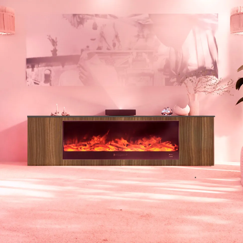 Mobilier en bois et cheminée électrique : une combinaison parfaite d’élégance et de fonctionnalité.