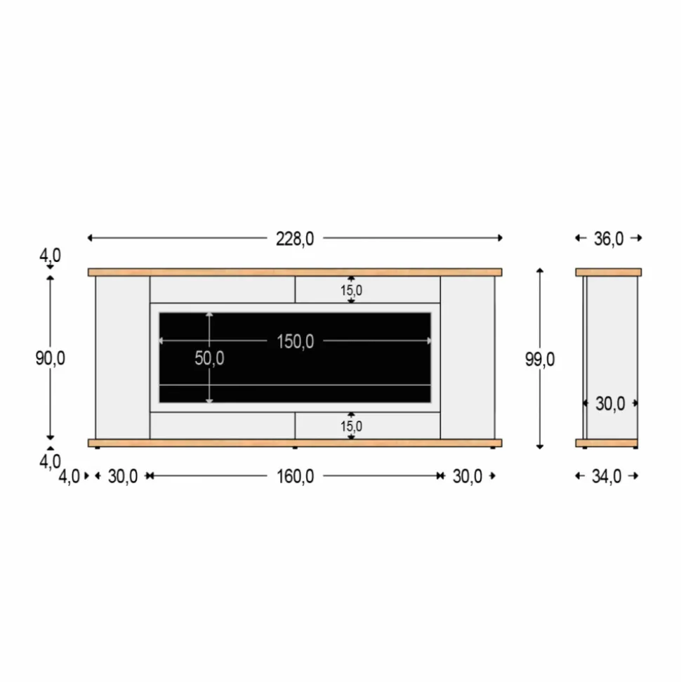 Vous avez une collection de décorations ou de photos que vous voulez exposer ? L’étagère supérieure spacieuse est parfaite pour tout ce que vous souhaitez exposer. De dimensions généreuses (228 cm de large, 99 cm de haut et 36 cm de profondeur), elle est également dotée de deux portes latérales pratiques, idéales pour tout ranger.