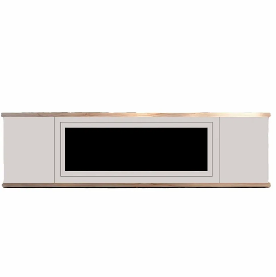 Stable et sûr Dimensionné pour s’adapter à de nombreux espaces (248 cm de large, 69 cm de haut et 36 cm de profondeur), le meuble de cheminée en bois gri