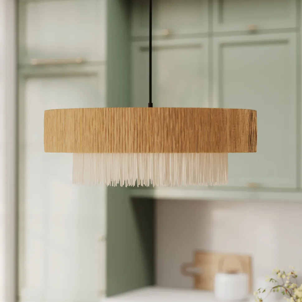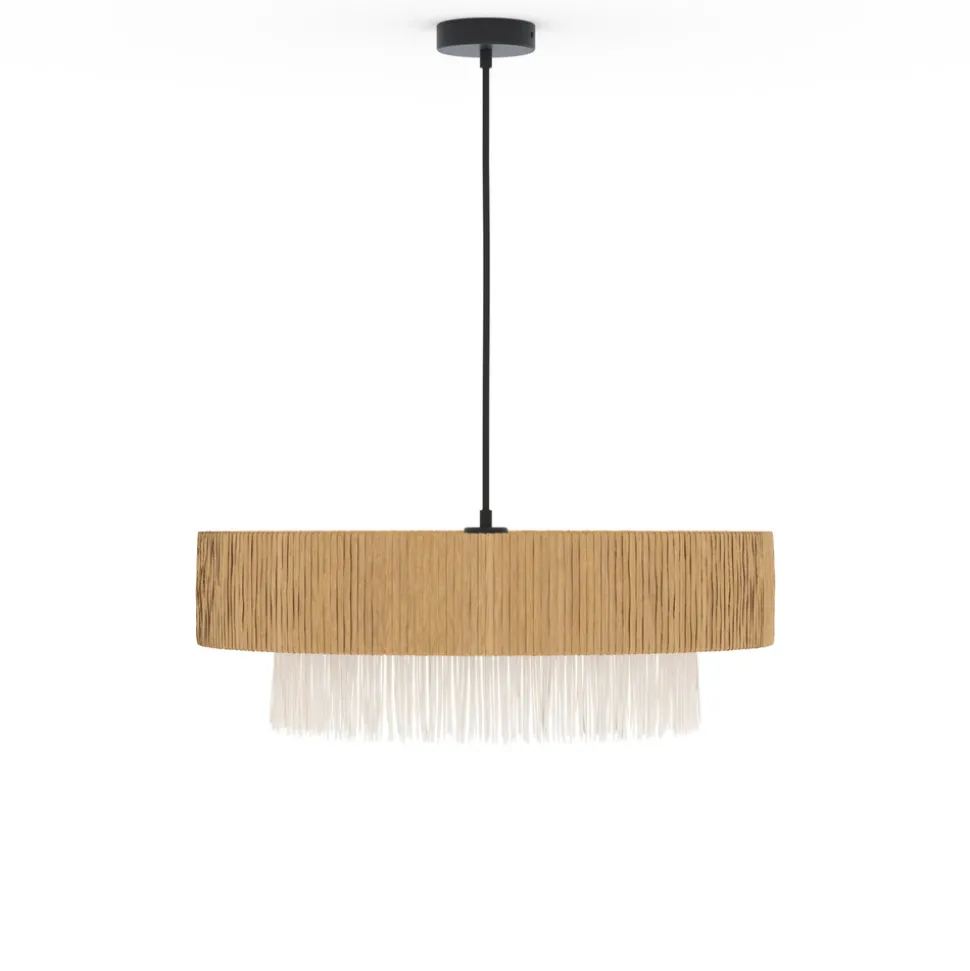 La suspension ronde Solara en raphia, allie des matières naturelles pour créer une ambiance douce et apaisante.