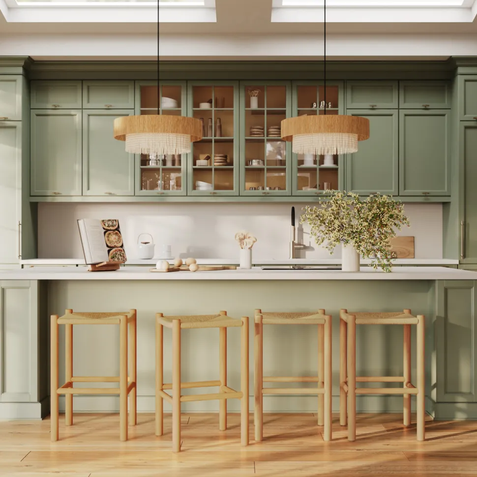 Solara s’intègre facilement dans tout type de décoration, notamment avec des meubles en bois ou en rotin.