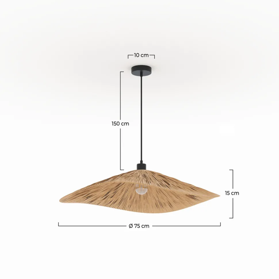 Grâce à son design unique, la suspension Stellaire diffuse une lumière douce et chaleureuse, subtilement filtrée par le raphia naturel. Cette pièce de 75 cm apporte une touche d’élégance naturelle tout en transformant l’ambiance de votre intérieur.