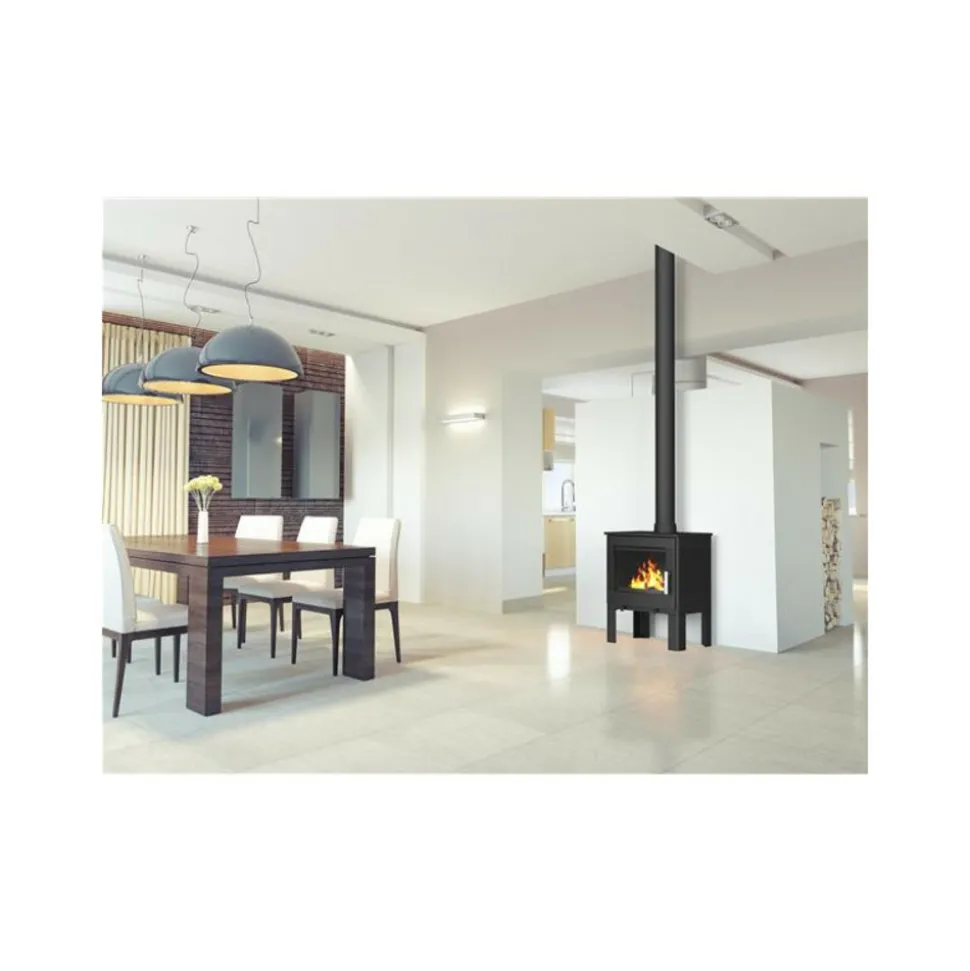 Poêle à bois étanche Gaby – Habillage fonte – Verre céramique haute résistance – Corps de chauffe avec doublage fonte à l’arrière, grille fonte amovible et vermiculite sur les côtés – Double combustion pour une combustion plus efficace et plus propre (taux de CO et poussières minimum) – Système de double entrée d’air réglable (indépendamment l’un de l’autre) : modifier l’entrée d’air secondaire contribue à une meilleure combustion puisqu’elle brûle les gaz imbrûlés par l’air primaire – Intensité de la flamme réglable – Système Vitre Propre – Cendrier grande capacité amovible – Taille de bûches maxi 49 cm – Protection arrière pour une installation rapprochée – Etanche et raccordable : compatible RE 2020 – Prise d’air raccordable sur l’extérieur Ø 100 mm – Régulation manuelle – Raccordement arrière ou dessus Ø 150 mm. Le prix indiqué comprend la TVA à 20%.