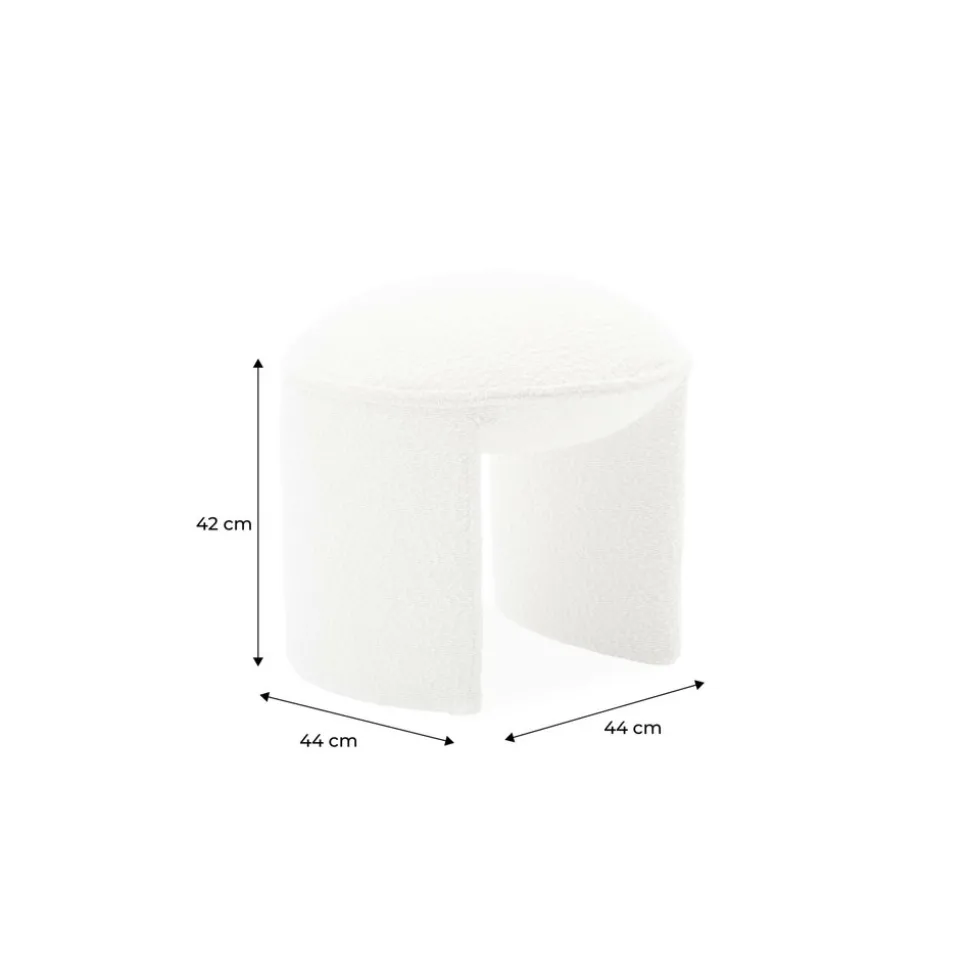 Les + produitsRevêtement boucletteTissu douxBois d’eucalyptusExplorez ce pouf, aussi moelleux qu’ergonomique. Son tissu bouclette vous enveloppe de confort, vous invitant à savourer chaque instant en sa compagnie. Employez-le comme siège d’appoint ou comme assise complémentaire. Que ce soit dans une entrée, une chambre ou même un salon, il se fond harmonieusement partout, ajoutant une note de design et de chaleur à votre espace intérieur de par sa simple présence.Sa structure, composée de bois d’eucalyptus et de contreplaqué, assure une robustesse essentielle à son utilisation optimale. Imaginez-le comme le petit détail bien pensé qui vient parfaire votre décor avec style.DimensionsPouf : L 44 x P 44 x H 42cmHauteur d’assise : 42cmPoids net : 4kgPoids max supporté : 110kg