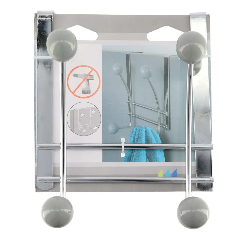 PATERE METAL 4 CROCHETS CERAMIQUE – CHROME GRIS – Tendance