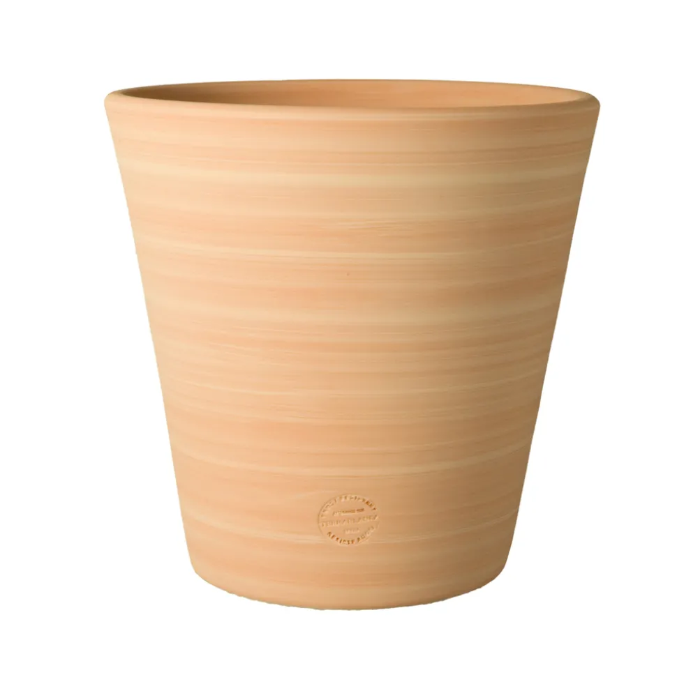 Ce vase est un coup de cœur ! Sa superbe finition striée lui donne un aspect artisanal du plus bel effet. Sa forme conique n’est pas seulement élégante, elle est aussi très pratique puisque ses larges bords favorisent le rempotage. La terre cuite, elle, garantit une surface poreuse à ce pot de fleurs, qui peut ainsi laisser respirer la terre et la plante. Un pot de fleurs indémodable ! D’une hauteur de 33cm, il propose une contenance de 8 litres, parfaite pour les fleurs, les plantes de taille moyenne ou les ficus.
