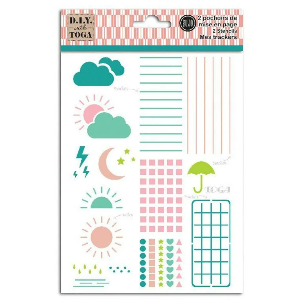 Grâce à ces pochoirs en plastique, organisez les pages de votre bullet journal ! Retrouvez des trackers, des mises en pages, la météo et autres décorations ! Ils sont réutilisables et très faciles à utiliser : il vous suffit de fixer le pochoir sur la page et de tracez la forme au crayon ! A vous les carnets stylés et bien organisés ! Dimensions : 15 x 20 cm.