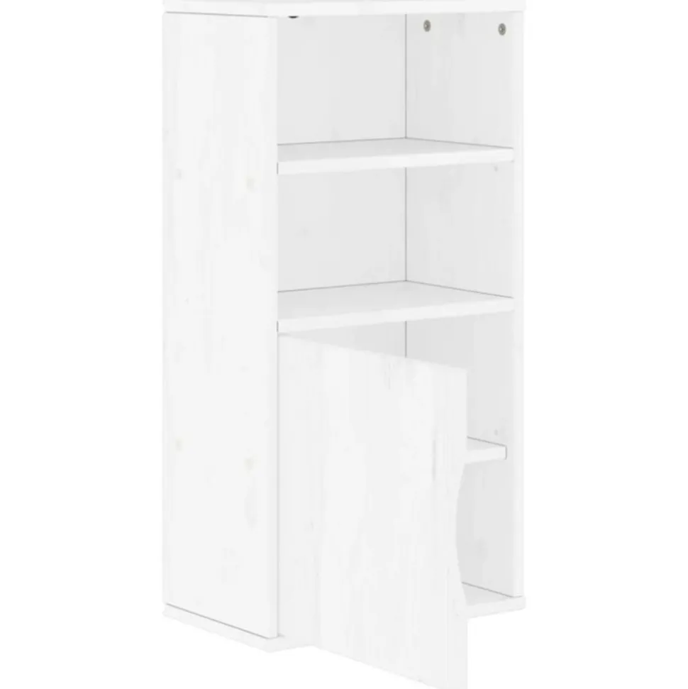 Apportez un charme classique à votre pièce avec cette armoire latérale en bois ! Matériau robuste et stable : le bois de pin massif est connu pour sa résistance et sa durabilité. Ses grains droits et ses nœuds distinctifs contribuent à son charme rustique.Grand espace de rangement : l’armoire comprend 1 compartiment et 2 étagères ouvertes, offrant un grand espace de rangement pour garder vos essentiels quotidiens bien organisés et à portée de main.Dessus stable et robuste : le dessus robuste est idéal pour placer vos petits objets ou des objets décoratifs comme des vases ou des plantes en pot.Facile à entretenir : l’armoire de rangement est facile à nettoyer avec un chiffon humide et nécessite moins d’entretien. Attention :Pour éviter qu’il ne bascule, ce produit doit être utilisé avec le dispositif de fixation murale fourni. Bon à savoir :Ce meuble de rangement complète parfaitement les autres pièces de la série ODDA, vous permettant soit d’assortir le style de manière transparente, soit de les combiner pour des solutions de rangement plus grandes. Couleur : blancMatériau : bois de pin massif, bois d’ingénierieDimensions : 40 x 24 x 79 cm (l x P x H)Dimensions de la porte : 36,5 x 36,5 cm (l x H)Avec 1 compartiment et 2 étagères ouvertesGamme : ODDAAssemblage requis : ouiCouleur : blancMatériau : bois de pin massif, bois d’ingénierieDimensions : 40 x 24 x 79 cm (l x P x H)Dimensions de la porte : 36,5 x 36,5 cm (l x H)Avec 1 compartiment et 2 étagères ouvertesGamme : ODDAAssemblage requis : oui