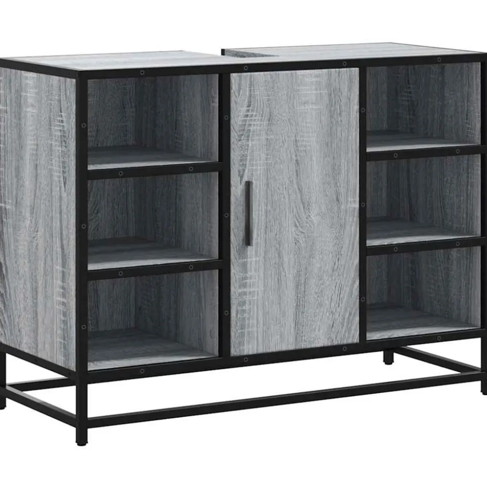 Ce meuble de lavabo de salle de bain est destiné à être un excellent supplément à votre salle de bain, lui donnant une apparence rétro et élégante ! Matériau stable et durable : le bois d’ingénierie est un matériau durable et stable dont la surface lisse résiste à l’humidité, à la déformation et au fendillement, ce qui en fait un choix fiable pour une grande variété de projets.Cadre stable et durable : le cadre en métal du meuble de salle de bain rehausse votre intérieur d’un style industriel et offre une durabilité, une stabilité et une résistance à la corrosion exceptionnelles.Grand espace de rangement : ce meuble de salle de bain offre suffisamment d’espace de rangement pour garder vos essentiels bien organisés et à portée de main.Dessus de meuble pratique : le dessus du meuble d’évier a un trou, il est donc idéal pour placer l’évier.Aspect attrayant : le design remarquable de l’armoire de salle de bains rehausse l’aspect général de votre espace grâce à ses lignes douces et à ses motifs sophistiqués, ce qui en fait le point fort de n’importe quelle pièce. Attention :Pour éviter qu’il ne bascule, ce produit doit être utilisé avec le dispositif de fixation murale fourni.